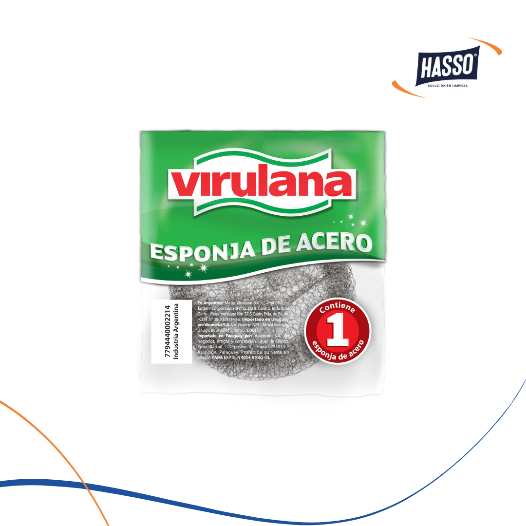 Esponja abrasiva para superficies difíciles como sartenes, parrillas y metales.