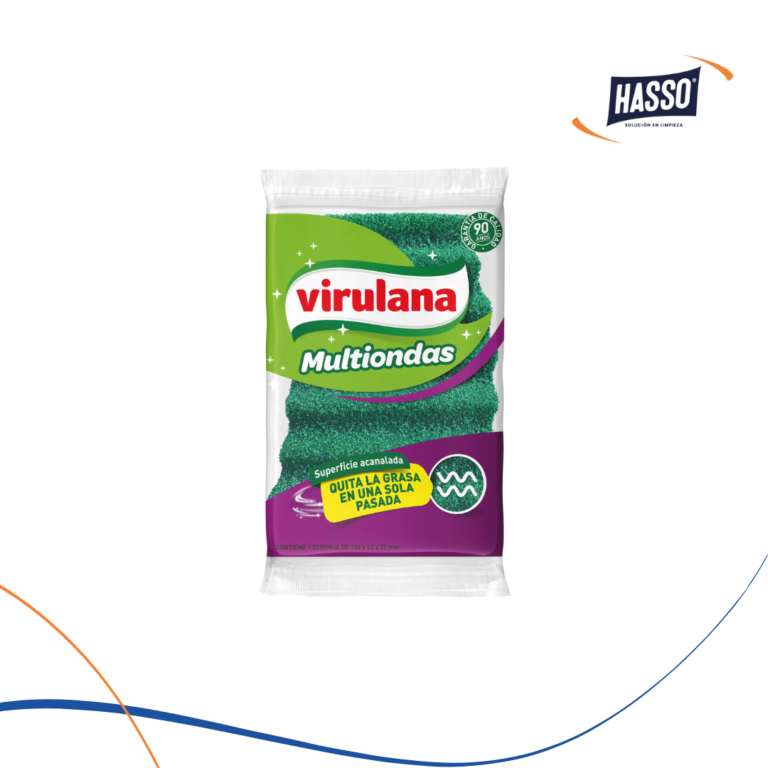 La Nueva Esponja Virulana MultiOndas posee una superficie acanalada que otorga un máximo arrastre quitando la grasa de una sola pasada.