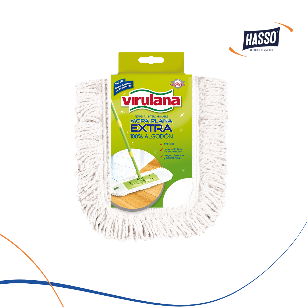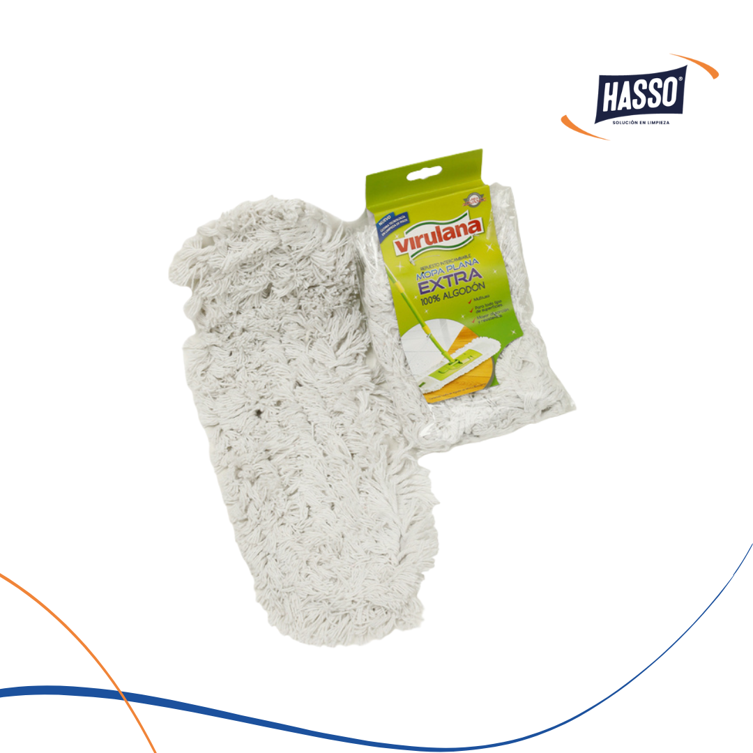 Nuevo repuesto de algodón para Mopa Ultra Flexy o Mopa Plana Extra. Permiten limpiar todo tipo de superficies sin dejar pelusa. Además, por su composición 100% brinda absorción con una gran resistencia.